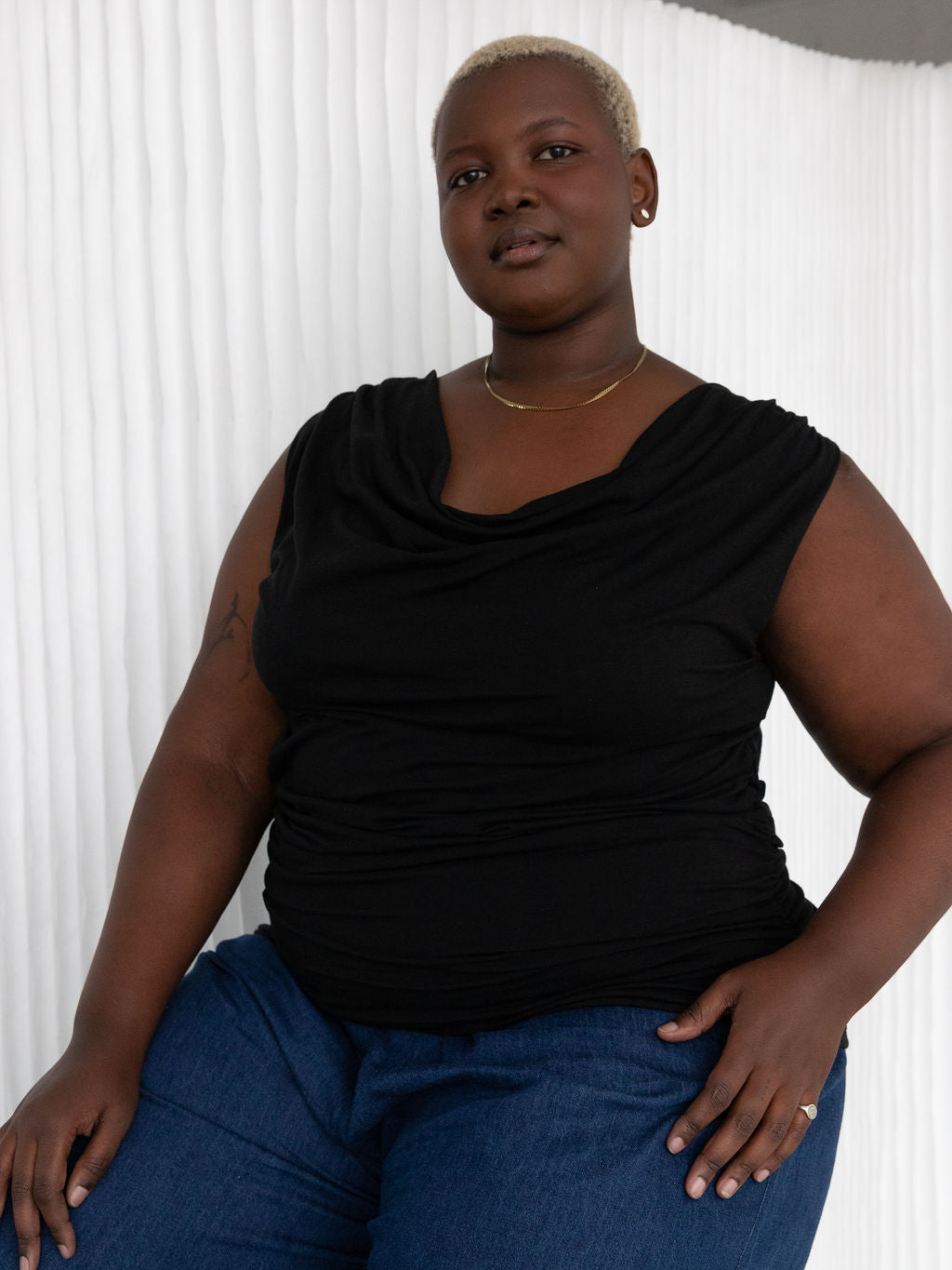 Elegance, but make it comfy. This reversible draped and ruched top can be worn from the office to the park.