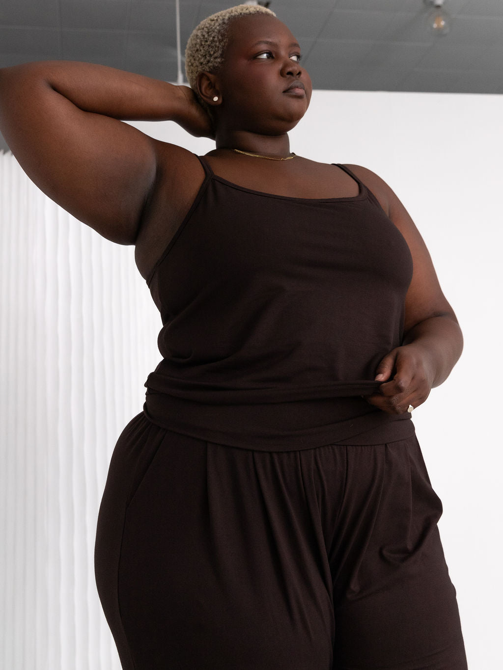 • Puja is 5'6" with a 37" bust, 31" waist and 40" hip and wears a size M.