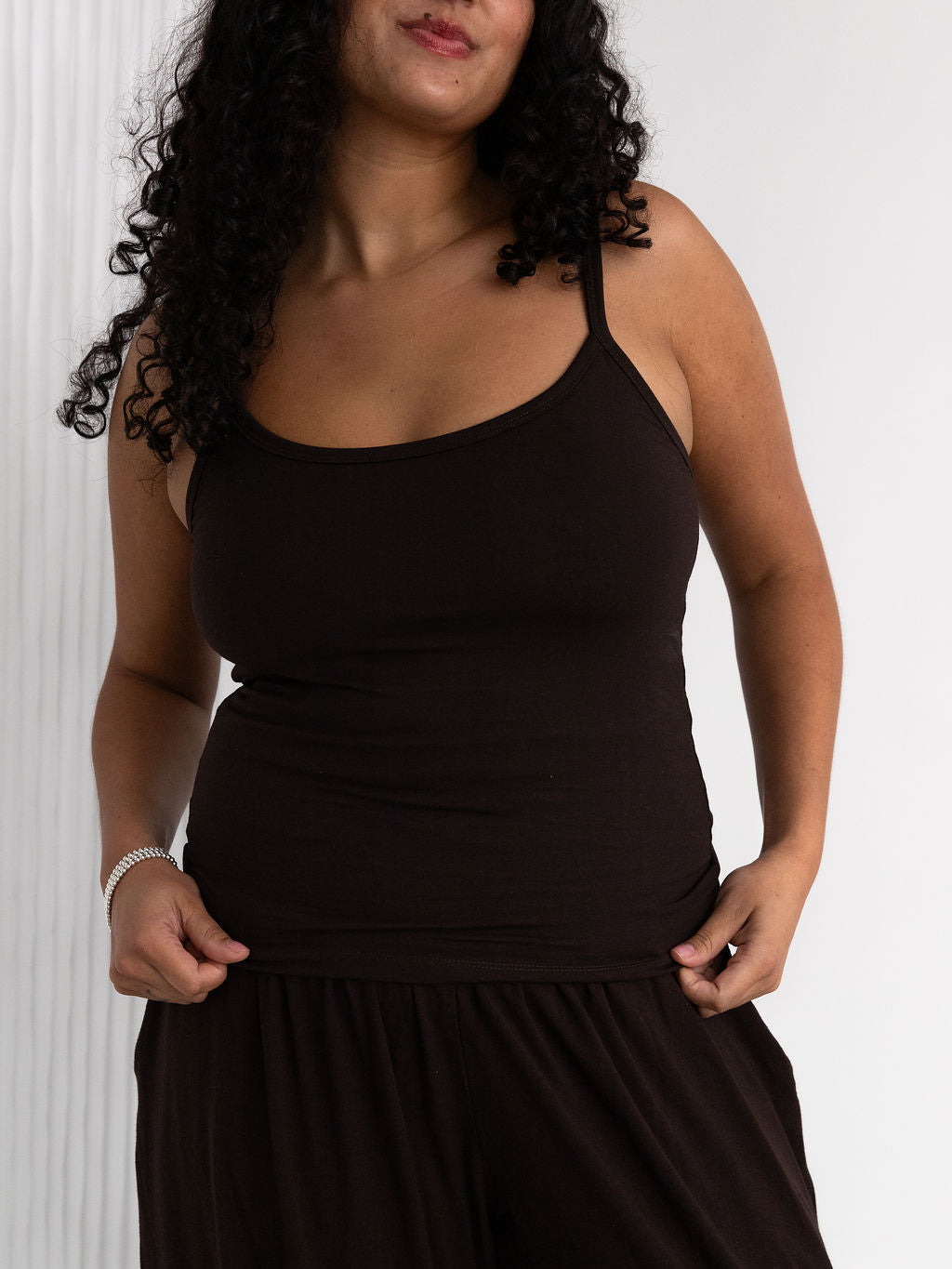 The perfect bra-less tank! A reversible tank with thin but supportive straps and a built-in shelf bra for added support.