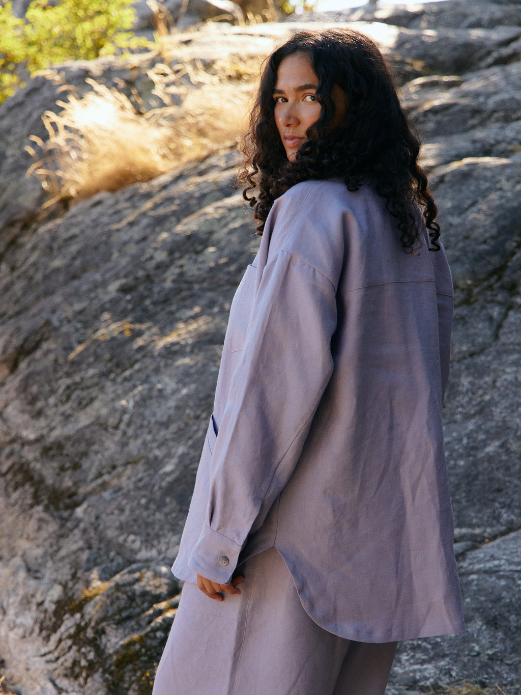 We work with an eco-certified mill in China to custom weave our 100% Flax Linen. Our linen is slightly heavier than a typical summer linen making it more resistant to pilling. It's not pre-shrunk, meaning you can create your own custom fit. Our linen is dyed using azo-free reactive dye. Its OEKO-TEX® and GOTS certified, and follows REACH standards. Its made with minimal water consumption and 65% of the water used is reused, creating a semi-circular model.