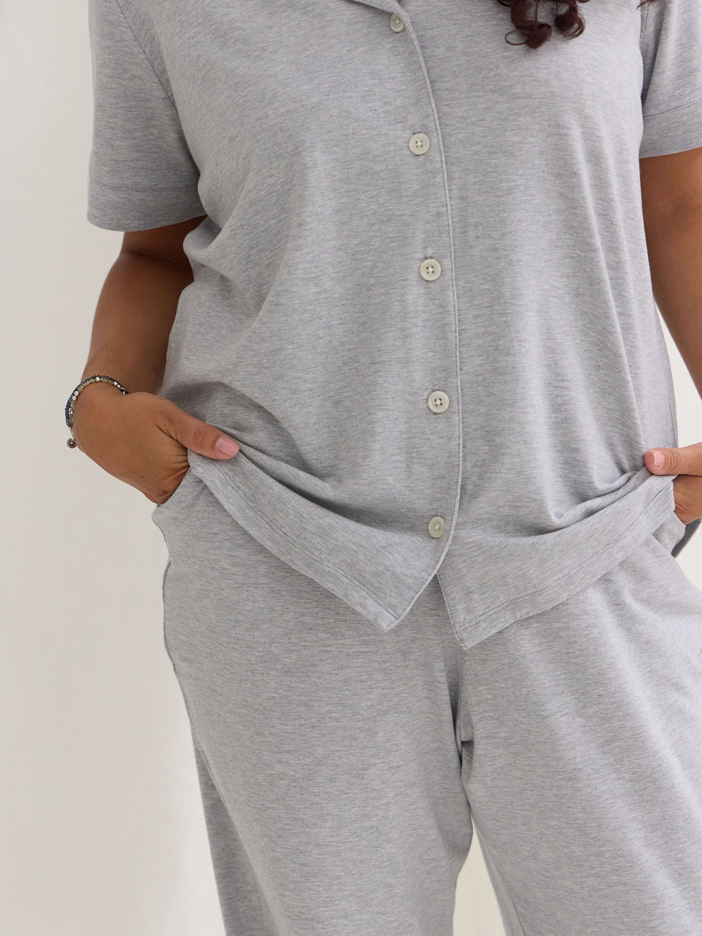 Curl up on the couch with a cup of tea, or take it straight to bed. Our ultra soft PJ set feels like wearing nothing at all.  And yes, there are pockets ;)