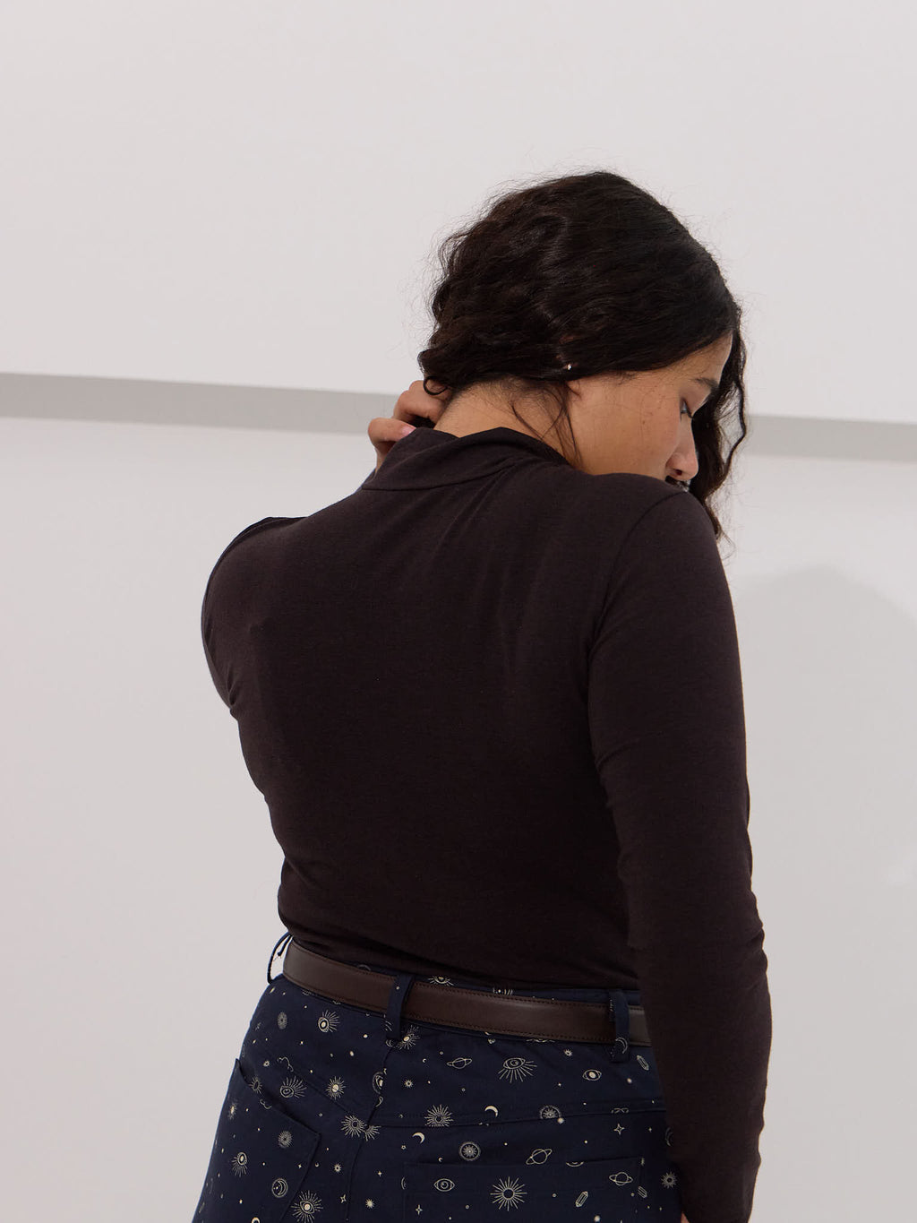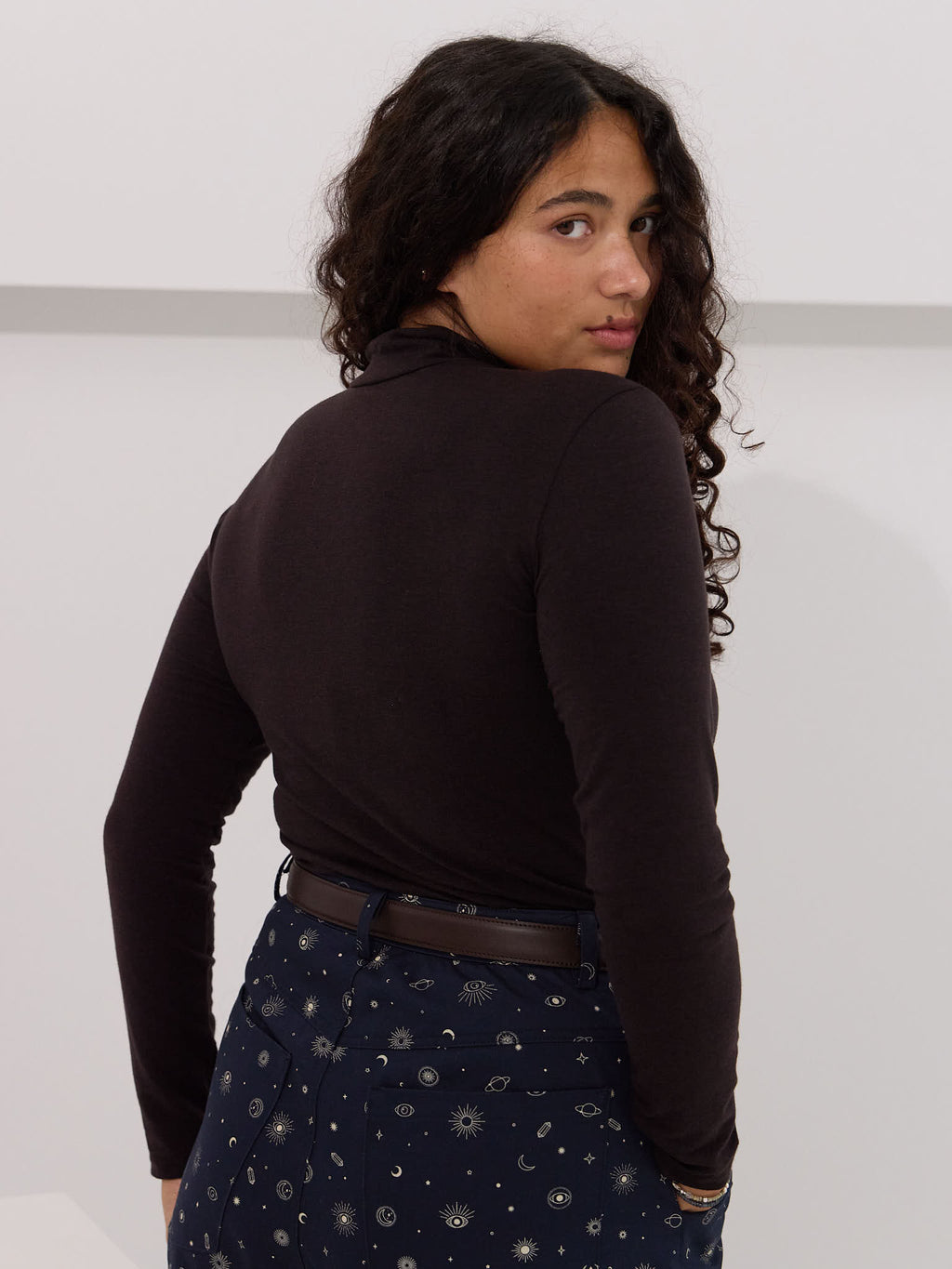 - Fitted mock turtleneck that doesn't choke
